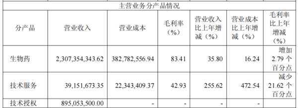 商业化方面,财报显示,荣昌生物全年实现生物药销售收入达23.07亿元,同比增长35.80%,占总营收比重70.97%,毛利率为83.41%,较上一年增加2.79个百分点。