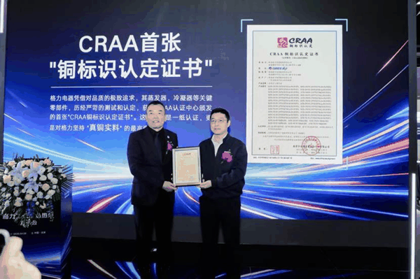 4月8日,格力电器产品顺利通过CRAA认证中心的全维度严苛测试与权威认定,获全国首张“CRAA铜标识认定证书”,以实打实的真材实料赢得这一重磅认证。通过认定的部件涵盖室内机换热器铜管、室外机换热器铜管、室内外机连接铜管、压缩机绕组、外风扇电机绕组五大核心部位,覆盖空调换热、连接、核心电机运转等关键功能模块。