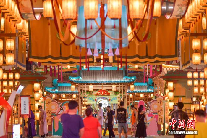 2025年6月10日晚,海口东坡老码头灯火辉煌,游人如织。 中新网 记者 骆云飞 摄
