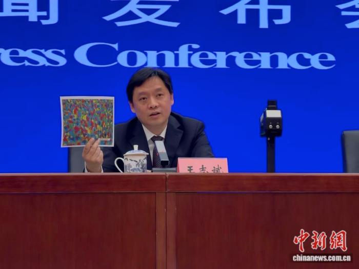 30日,在生态环境部举行的例行新闻发布会上,生态环境部科技与财务司司长王志斌展示了一台“植被CT体检机”。