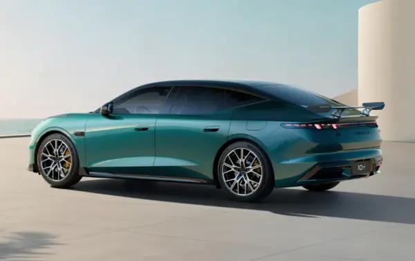 从实车信息看,领克10+配备了可调碳纤维大尾翼,在高速行驶时可提供最高约109.1kg的下压力。底盘采用全铝合金前双叉臂与后集成多连杆独立悬架,搭配CCD连续可变阻尼减振器。此外,该车还提供一键漂移模式及21英寸锻造轮毂等运动套件。