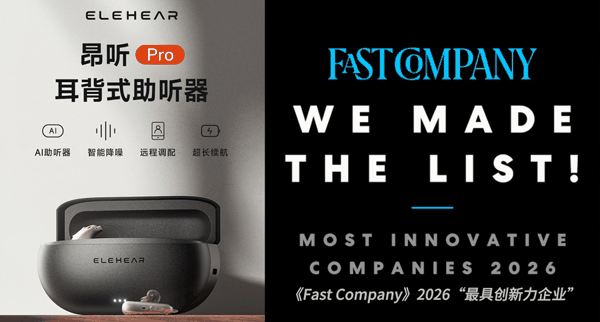 《Fast Company》文章中指出,总部位于中国深圳的昂听Elehear引领着面向消费者的助听器技术新浪潮,其产品以普惠价格实现高端品质,在国际市场备受认可。