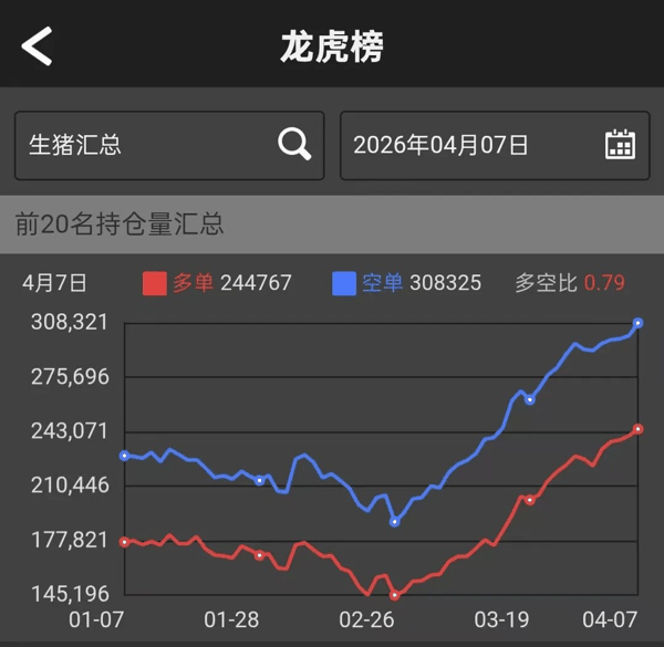更为重要的是,虽然短期内生猪期货价格不断走低,但多头资金却并未放弃。数据显示,3月以来,多头持仓量持续增加。