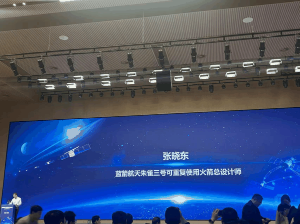 (蓝箭航天朱雀三号可重复使用火箭总设计师张晓东,记者李明明大会现场拍摄)