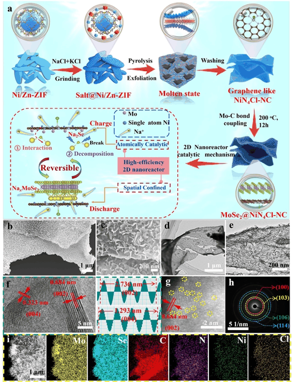 论文题目:Atomically dispersed NiN 4 Cl-NC nanoreactors catalyze high-efficiency MoSe 2 conversion for remarkable sodium storage