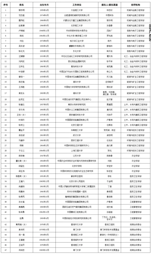 4月2日,中国工程院发布《关于公布第十六届光华工程科技奖通过初评的候选人名单的公告》。此次,共47人入选。