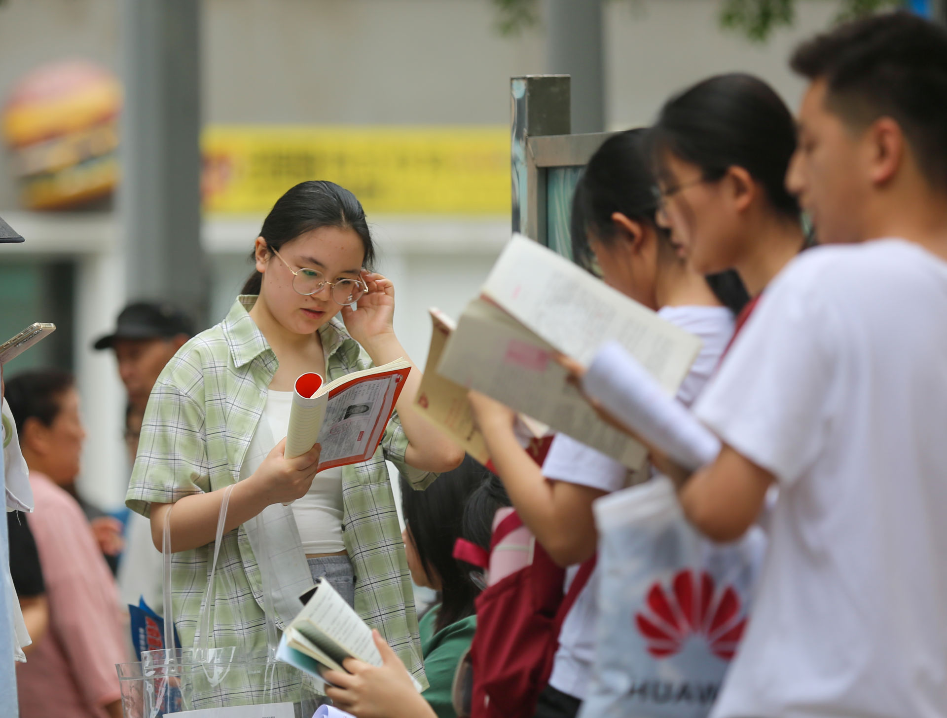 2025年6月7日,河南三门峡,考生在考点复习。河南迎来新高考首考。(视觉中国|图)
