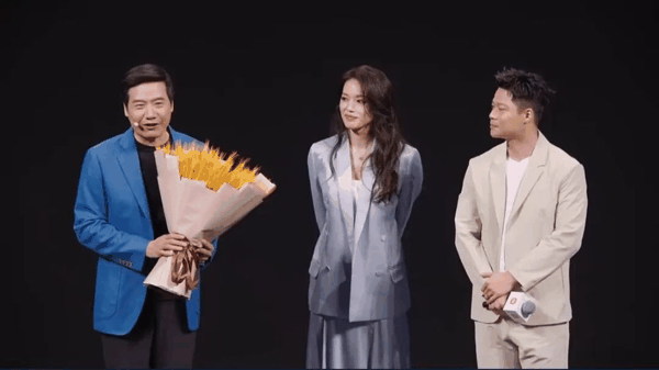 雷军介绍小米汽车品牌的代言人舒淇和苏炳添