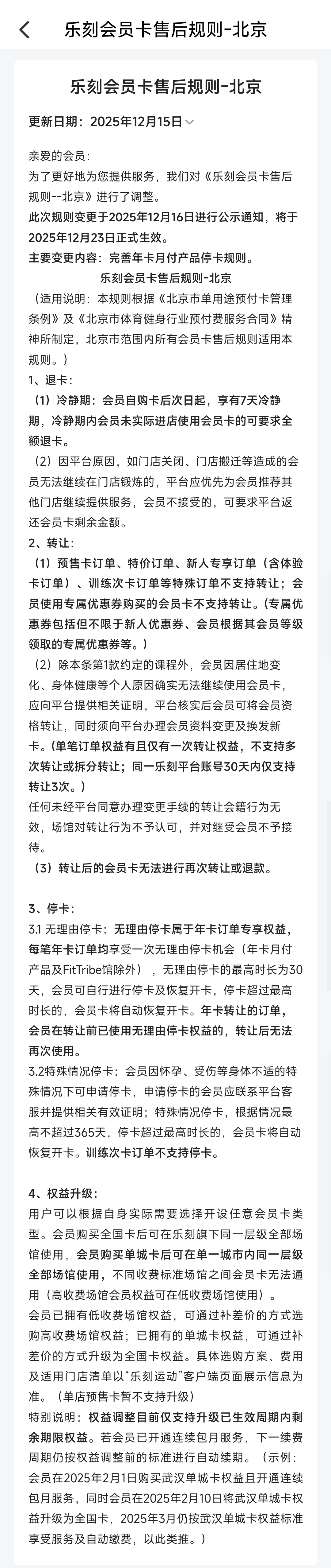 图片来源:《乐刻会员卡售后规则-北京》截图。