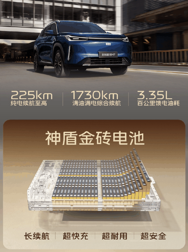 IT之家 4 月 3 日消息,吉利汽车宣布旗下银河 M7 车型将于本月上旬开启预售,下旬正式上市。该车此前已正式亮相,新车是银河 M 系列首款中级电混 SUV,纯电续航 225km,综合续航可达 1730km。