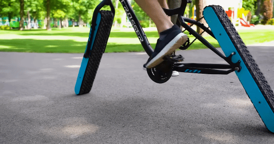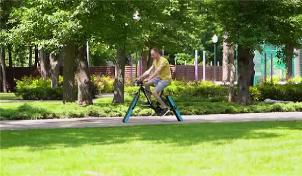 与传统自行车依靠车轮滚动前行不同,这款发明摒弃了轮子设计,采用独特的机械结构实现移动。