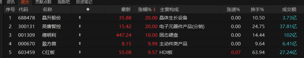 金针菇、 英唐智控 “20cm”涨停, 德明利 、 盈方微 涨停。