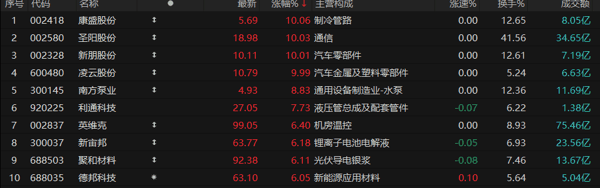 液冷概念 持续走强, 康盛股份 、 圣阳股份 、 新朋股份 、 凌云股份 涨停。