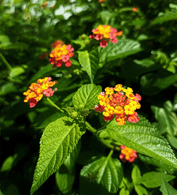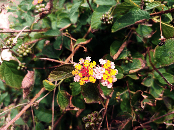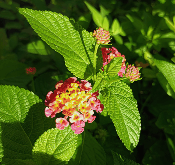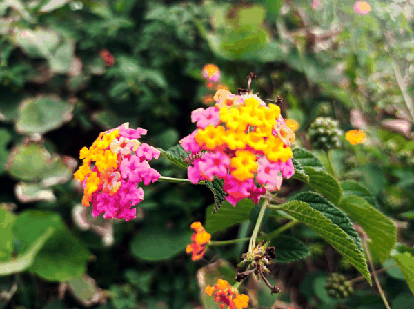 除了变色,马缨丹还有一个让人过目不忘的特点: 气味强烈。 如果你揉碎它的叶子,会闻到一股类似薄荷混合樟脑的刺激性气味。有人觉得 “臭”,所以它也叫“臭草”。这种气味其实是马缨丹的防御武器——很多食草动物闻到这股味道就会掉头走开。不过,也有一些人会把它的叶子当香料用(注意,这是不安全的!),可能是把它和唇形科的香草搞混了。