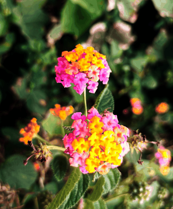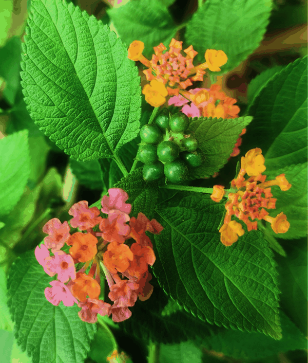 为什么它会变色?科学家发现,这其实是马缨丹为了吸引传粉昆虫而进化出的 “小聪明”。黄色和橙色对蜜蜂、蝴蝶等传粉者最有吸引力,而变成红色后,就意味着这朵花已经授过粉、不再需要昆虫光顾了。这样一来,传粉者会自动把精力集中在那些还“需要帮忙”的新花上,大大提高了传粉效率。是不是很聪明?