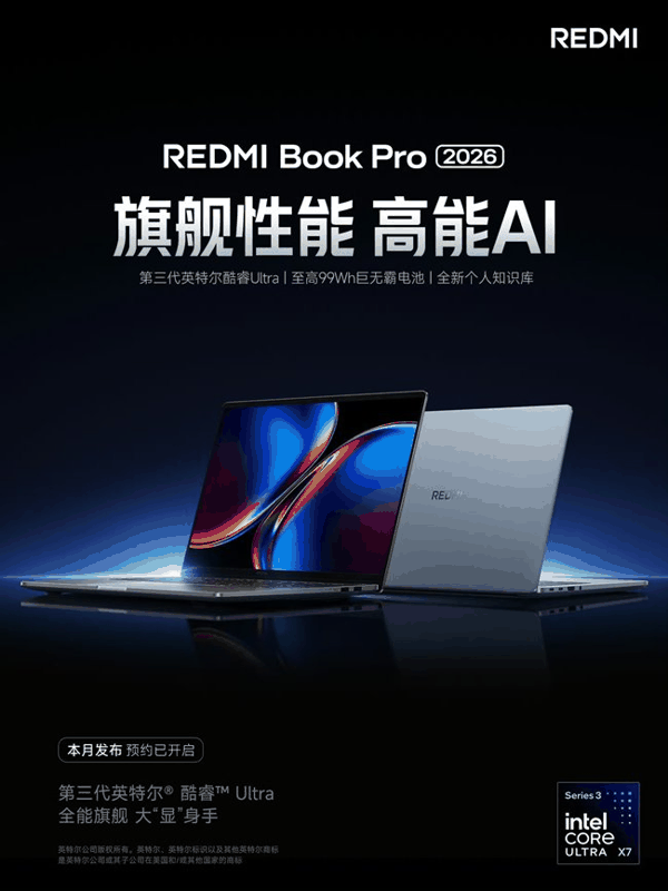 【iMobile爱科技资讯】4月10日,REDMI正式官宣全新REDMI Book Pro 2026系列笔记本,这款定位高性能AI旗舰的新品将于本月与REDMI K90 Max同场发布,目前已开启预约。
