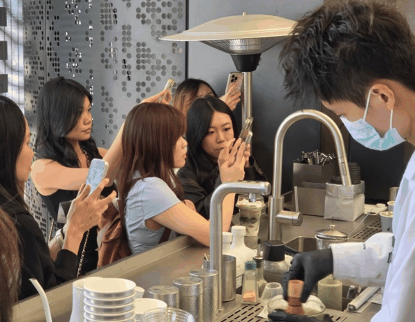 Matcha Wang去年12月正式开业,凭借一款“小羊莉莉”抹茶拿铁,在短短三个月内成为了许多外国游客来上海的必打卡地之一。Matcha Wang负责人告诉记者,每日客流稳定在900至1200人,外国游客占比很高。“上午10时开门就有人排队,一直持续到晚上闭店。最多的时候,店外等候区挤了四五十人,点单后要等将近一小时才能取到。”