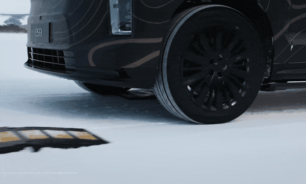 这套悬架的响应速度极快,两年前 ET9 顶着香槟塔过减速带的画面,这次在 ES9 上直接升级成了冰雪路面顶着六层香槟塔进行测试,依然滴酒不洒。