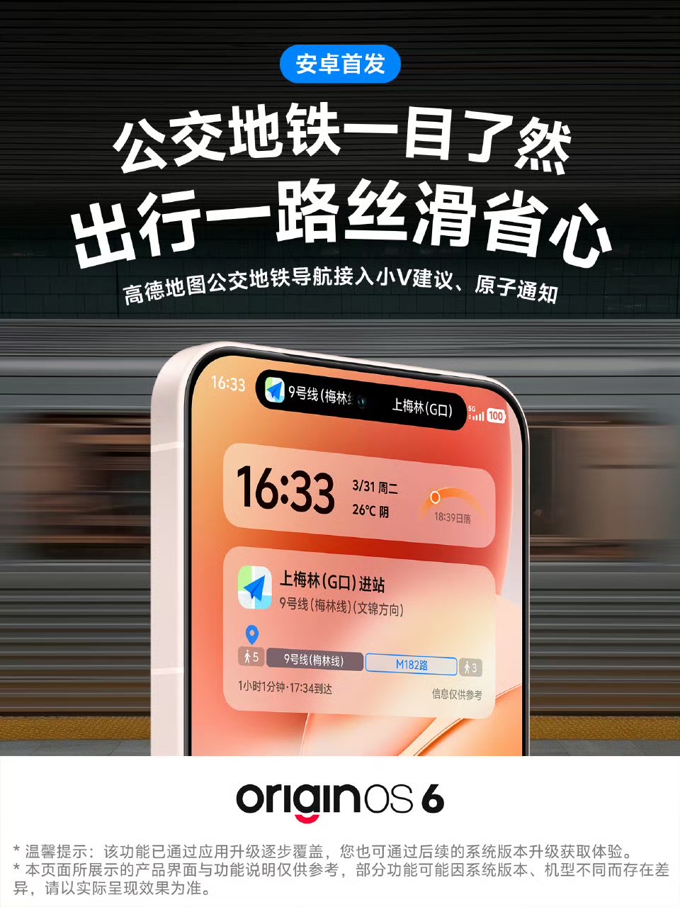 就在不久前的 3 月中旬,vivo 宣布“驾车导航”上岛,OriginOS 6 的原子通知功能新增支持 高德驾车实时导航信息显示 。