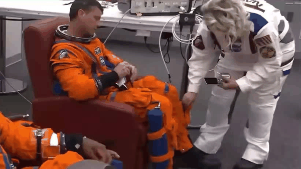 放置环节,宇航员在升空后可以正常使用 iPhone,且 iPhone 与宇航服系统没有任何技术连接。只是为了在发射和返回地球期间能便利存放,宇航员需要将 iPhone 放置在橙色猎户座生存服的储物袋中。