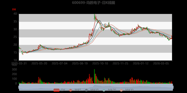 以3月30日收盘价计算, 均胜电子 目前市盈率(TTM)约为29.63倍,市净率(LF)约2.28倍,市销率(TTM)约0.65倍。