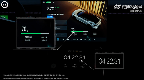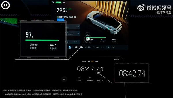 从官方公布的实测数据看, 从10%充至70%仅需4分22秒,充至97%更是进入到9分内,仅为8分42秒, 都要比比亚迪的兆瓦闪充更快。