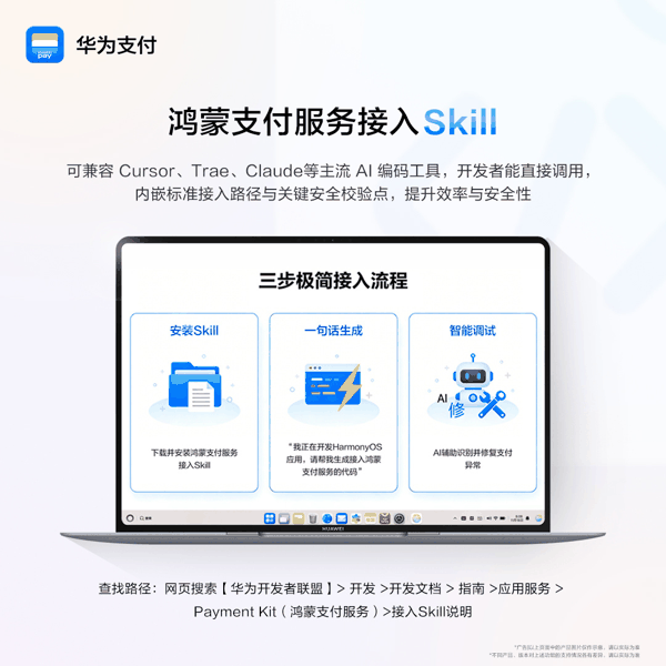 华为鸿蒙支付服务接入Skill正式发布,AI编码工具最快三步完成基础支付接入