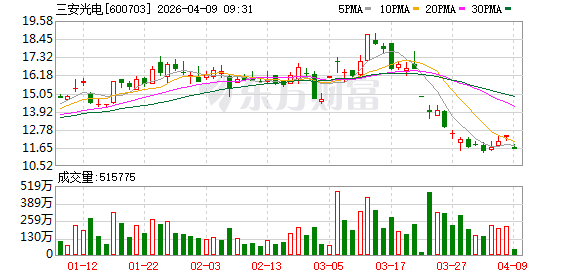 截至4月8日收盘,三安光电股价为12.41元/股,市值为619.14亿元。