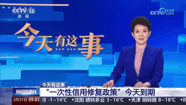 央行一次性信用修复政策今天到期:单笔万元内信贷逾期若借款人足额还款,征信系统将不予展示