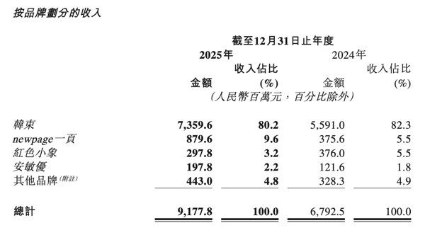 相比主品牌韩束,在母婴板块中,被公司视为第二增长曲线的newpage一页品牌表现突出,2025年实现营收8.80亿元,同比增长134.2%,占到总收入的9.6%,但仍需继续发力。