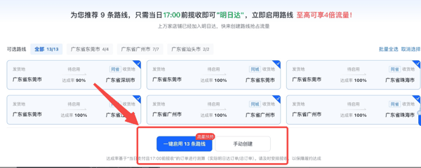 对于想要做明日达的商家,平台建议可优先处理同省及邻省订单,并尽量做到当日发货或优先发货,提升整体订单的履约效率。或通过后台启用平台推荐/配置明日达路线,保持稳定履约即可稳定透标。