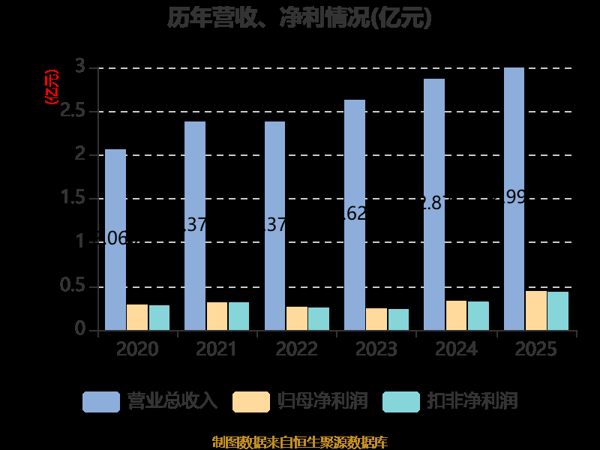 中证智能财讯 博通股份 (600455)4月3日披露2025年年度报告。2025年,公司实现营业总收入3亿元,同比增长4.48%;归母净利润4440.92万元,同比增长36.43%;扣非净利润4373.94万元,同比增长36.79%;经营活动产生的现金流量净额为9587.37万元,同比下降1.91%;报告期内, 博通股份 基本每股收益为0.711元,加权平均净资产收益率为14.66%。
