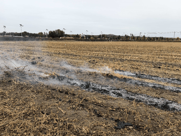 东北大豆收获后的农田秸秆焚烧。(游超摄影)
