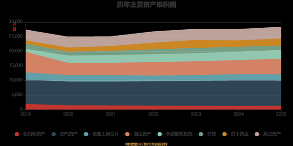 资产重大变化方面,截至2025年末,公司固定资产较上年末增加9.93%,占公司总资产比重上升1.22个百分点;油气资产较上年末减少1.1%,占公司总资产比重下降1.18个百分点;存货较上年末减少10.57%,占公司总资产比重下降0.79个百分点;货币资金较上年末增加10.48%,占公司总资产比重上升0.59个百分点。