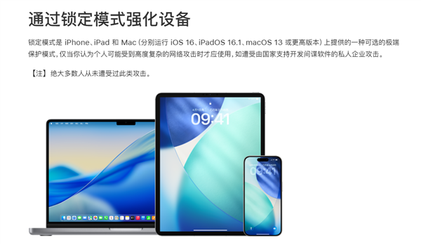 作为苹果专为记者、社会活动家、律师等高风险人群打造的极端安全功能,锁定模式可覆盖 iPhone、iPad、Mac 全系列设备,核心采用 “以便利换安全” 的防护逻辑。