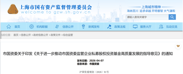 4月7日,上海市国资委发布《关于进一步推动市国资委监管企业私募股权投资基金高质量发展的指导意见》(以下简称《指导意见》)。其中提到倡导国资领投、管理费支付差异化、定价随行就市等多项举措,引发 创投 行业的关注。