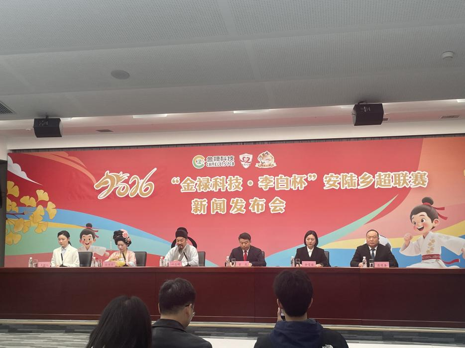 3月11日,2026年“金禄科技·李白杯”安陆乡超联赛新闻发布会在武汉长江日报发布厅召开,60余位中省市及武汉都市圈媒体、自媒体代表到场参会,安陆市相关部门负责人、乡超球员代表等出席,现场正式官宣:本届乡超联赛将于3月15日在安陆市体育中心体育场开赛。