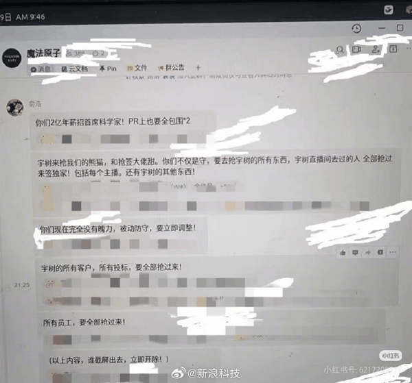 4月10日,一则内部群聊截图的流出,让追觅科技创始人俞浩再次站在舆论的风口浪尖上。这张截图显示,俞浩在名为“魔法原子”的内部工作群中,以近乎命令式的口吻向团队下达指令,要求对宇树科技展开全面“围攻”。