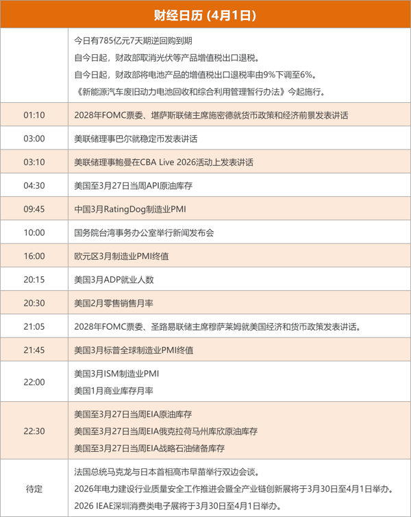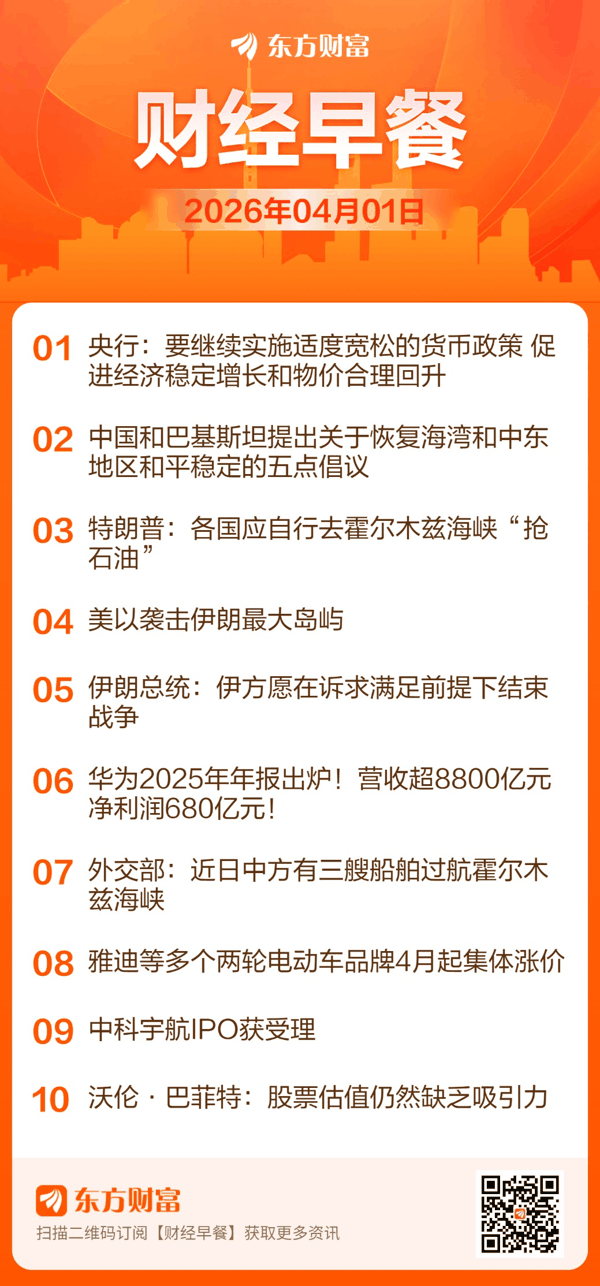 东方财富财经早餐4月1日周三