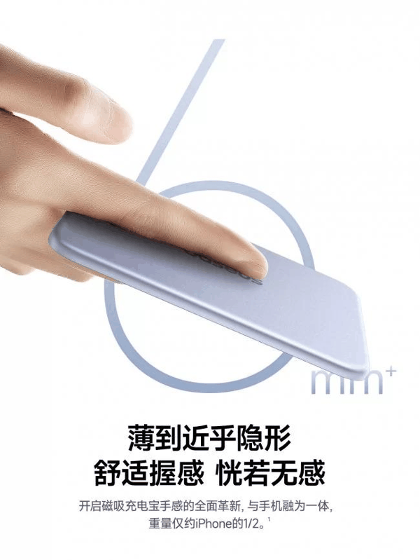 依托升级后的Pocket IN堆叠架构2.0技术,机身薄至6.9mm,重量仅105g,不到一部 iPhone的一半,磁吸贴合后近乎无感。R角弧度1:1对标iPhone设计,不挡镜头、不超边框,搭配苹果同款铝合金材质与航空级玻璃纤维磁吸面壳,手感与颜值兼备,贴合手机浑然一体。
