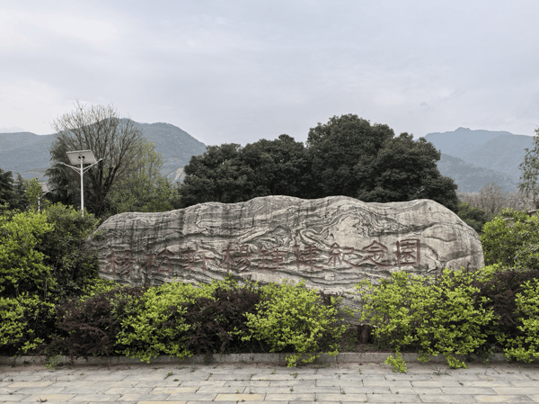 在龙潭堡村前的开阔地带,坐落着庄严肃穆的杨松轩杨钟健纪念园,这是华州为纪念杨氏父子,传承其精神所建,也是此次考察的核心地点。纪念园背依秦岭,面临渭水,选址开阔,氛围清幽,整体布局对称规整,以杨松轩先生墓为中心,四周石碑林立,松柏常青,营造出庄重肃穆、缅怀先贤的氛围。