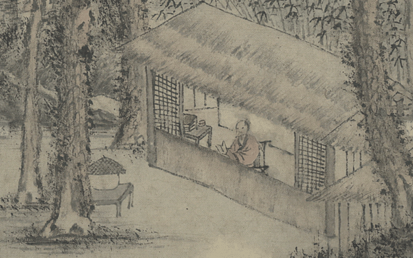 元代王蒙《松窗读易图卷》(局部)。