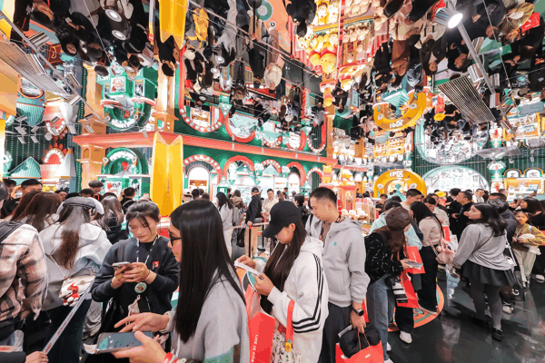 在全球门店超8400家的起点上,名创优品正经历一场深刻的蜕变:它正从过去的平价杂货店的印象,转向以IP运营为核心的全球零售巨头。这一转变的背后,是其“国际IP+自有IP”双轮驱动的生态布局,以及以大店为载体的沉浸式消费场景革命。
