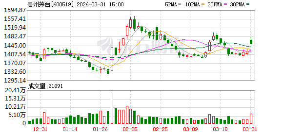 3月31日,南都湾财社-酒水 新消费 指数课题组记者注意到,受前一晚(3月30日)宣布主力产品飞天茅台提价影响, 贵州茅台 早盘高开1468元/股,受大盘波动影响,个股收盘录得1450元/股涨2.11%。
