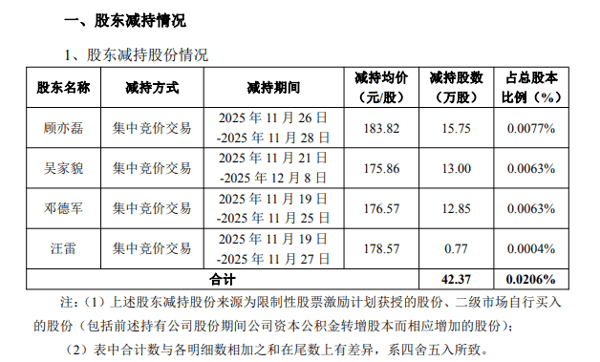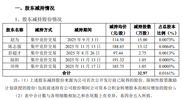 信披资料显示,2025年8月至2025年12月,阳光电源副董事长、高级副总裁顾亦磊,董事、高级副总裁吴家貌,副总裁邓德军,副总裁汪雷等高管合计减持75.34万股,金额合计超过1.2亿元。