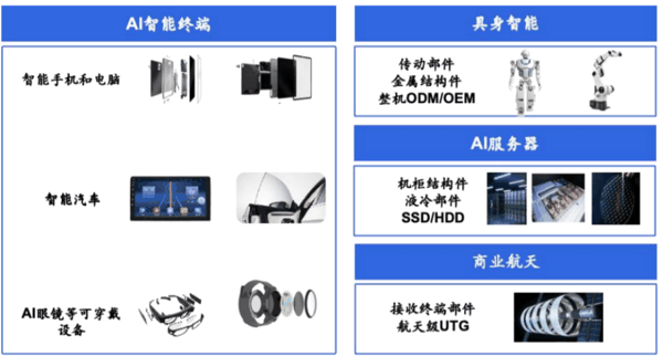其在年报指出,公司定位AI硬件全产业链一站式精密制造解决方案提供商,业务覆盖AI智能终端(包含智能手机、 AI眼镜 、智能 汽车 、具身智能等)、AI服务器、 商业航天 等产品的结构件、功能模组、整机组装等。