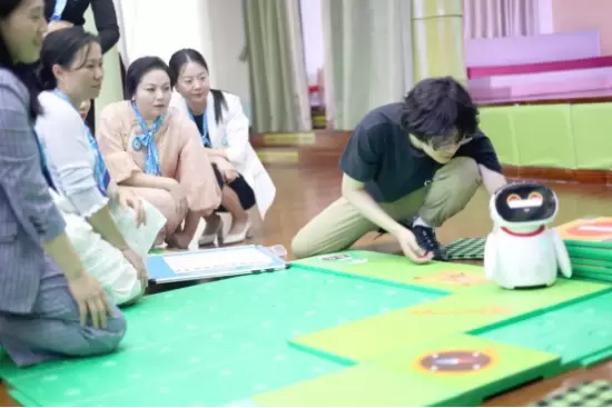 此外,活动还设置了贝芽智能机器人编程游戏体验环节,在夏云天总监带领下,与会园长们积极参与实操互动,直观感受儿童智能机器人在课程教学、趣味互动、思维培养及特色活动开展中的独特价值。贝芽机器人作为幼儿的“智能学伴”,充分激发了孩子们的探索欲与解决问题能力。