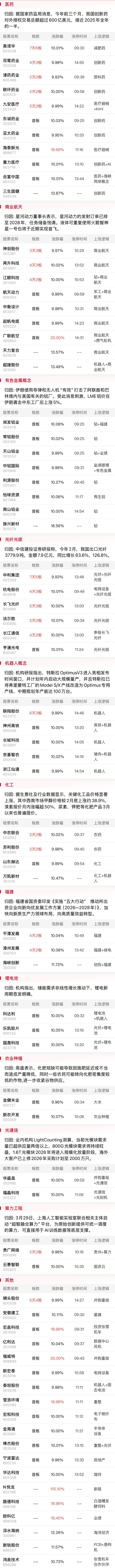 据界面新闻,SpaceX官网显示,SpaceX计划当地时间3月30日执行猎鹰9号“运输者-16”近地轨道发射任务。此前SpaceX计划募资超过750亿美元,此次IPO有望成为史上规模最大的首次公开募股。 商业航天 概念热度进一步提升,前期人气股 神剑股份 实现晋级3连板, 再升科技 反包涨停走出4天3板, 西测测试 盘中一度涨逾10%,逼近1月份创出的历史高点,进而带动 广联航空 等超跌股午后涨停。从 神剑股份 的连板带动多只低位品种的补涨,与此前绿电产业链的炒作脉络如出一辙,因此活跃资金从绿电到商业航天形成高低切,也从侧面反映的投机资金的参与接力的意愿相对有限。商业航天概念能否复制去年底的大容量抱团行情,从市场整体流动性看仍有欠缺,后市仍应以聚焦于当前反弹落后的前期人气股为主。
