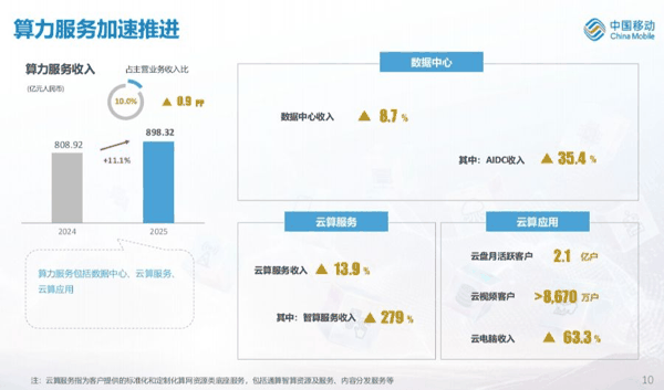 中国移动万亿营收底盘稳固,2025年智算服务收入大增279%