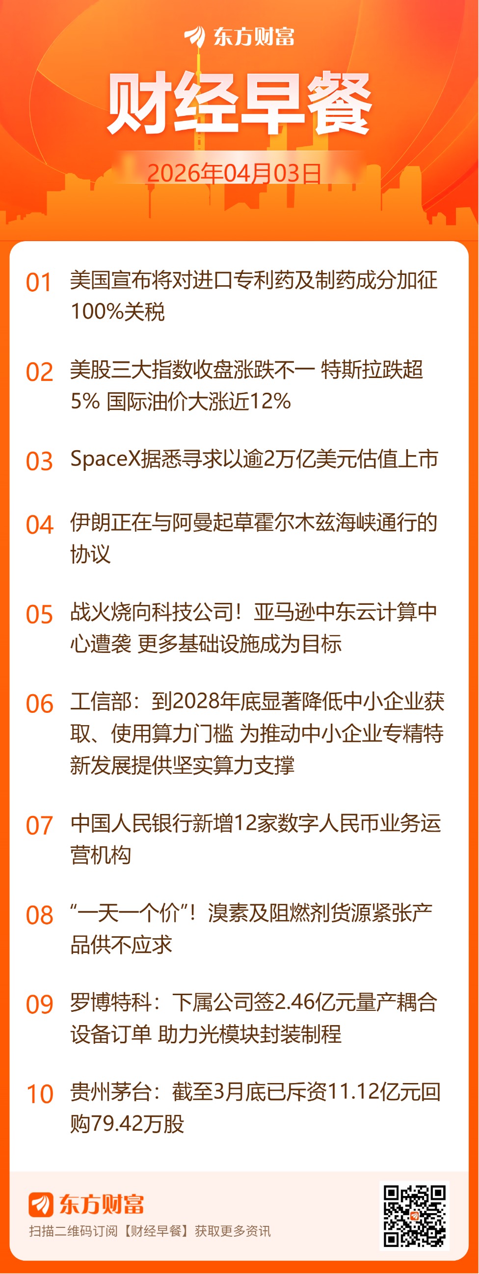 东方财富财经早餐4月3日周五